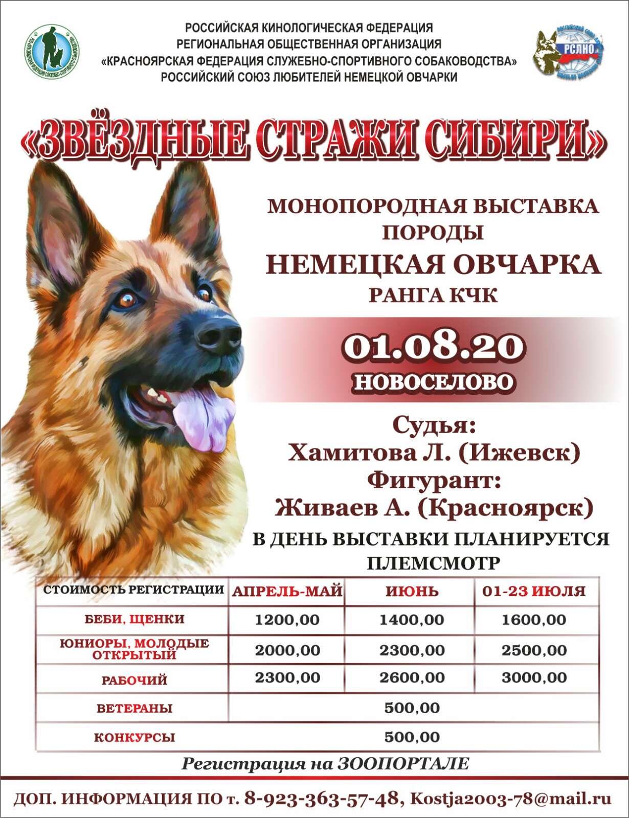 Продолжаем регистрацию на закрытое Зоотехническое мероприятие НЕМЕЦКИХ ОВЧАРОК ранга КЧК г. с. Новоселово . ПРОСИМ ОБРАТИТЬ ВНИМАНИЕ ЧТО МЕРОПРИЯТИЕ СОСТОИТСЯ 2 АВГУСТА!!! БОЛЕЕ ПОДРОБНУЮ ИНФОРМАЦИЮ МОЖНО ПОЛУЧИТЬ vistavka.kfsss@gmail.com ☎+7 391 2889787.