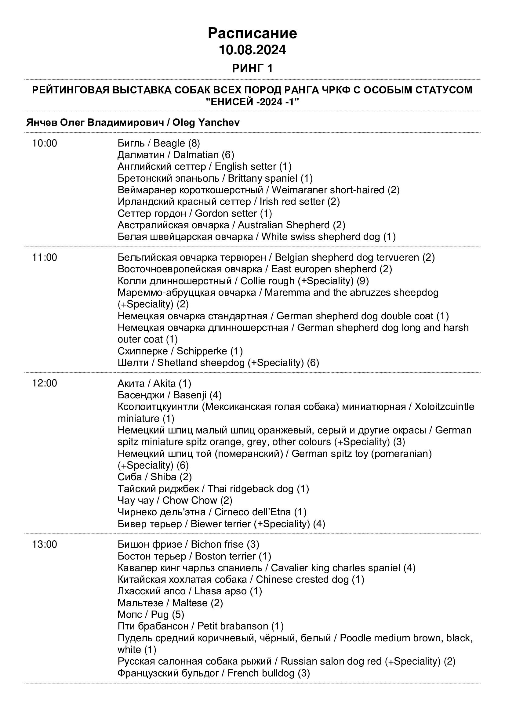 1. https://zooportal.pro/show/16421506/#content Рейтинговая выставка ЕНИСЕЙ - 1